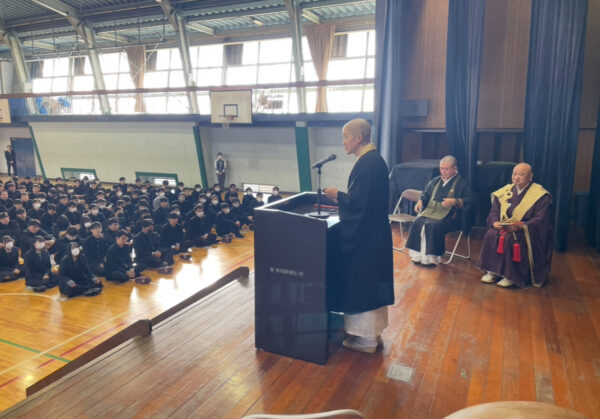 その後は足利学校付属高校で700名の全校生徒と成道会を法要を行いました。
